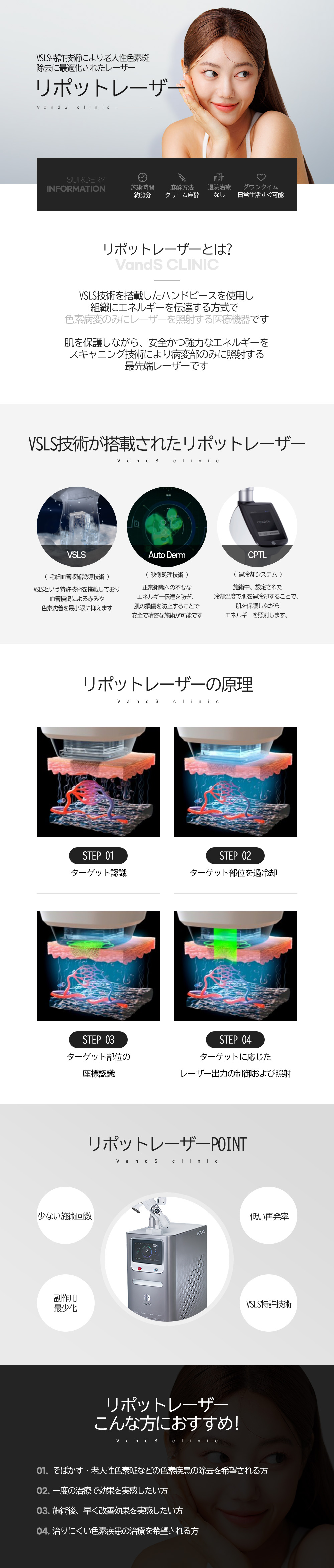 4. シミが重なっている、または着色傾向性が高い肌タイプの場合、最初は大丈夫に見えても施術後1~2ヶ月間に回復経過着色反応が生じることがあります。 発生時の回復期間は3-6ヶ月程度で個人によって様々ですが、時間の経過とともに最終的には回復します。